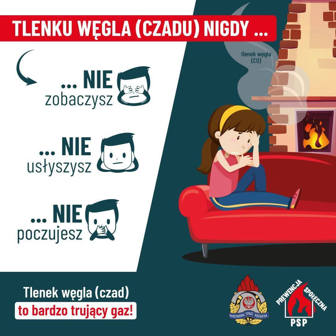 Po sprawdzeniu budynku na obecność gazów trujących, oraz przewodu kominowego kamerą termowizyjną, nie stwierdzono występowania zagrożenia.
